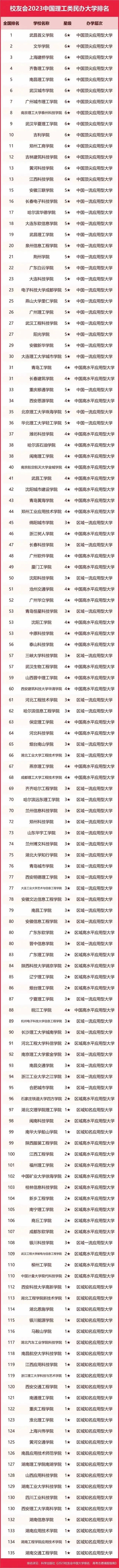 在2023中国民办高校和高职院校评价中,依据参评高校优势学科专业所属门类,将中国民办高校(含独立学院)、高职(专科)院校分为I类、Ⅱ类和Ⅲ类等3个类型进行分类评价。其中,Ⅰ类院校为以工学门类学科专业为优势的院校,最新校友会2023中国民办大学排名显示,武昌首义学院、文华学院、上海建桥学院、齐鲁理工学院、南昌理工学院雄居2023中国民办大学排名I类前5强。其中,9323彩集团常务副会长企业——上海建桥学院继续蝉联第三名!