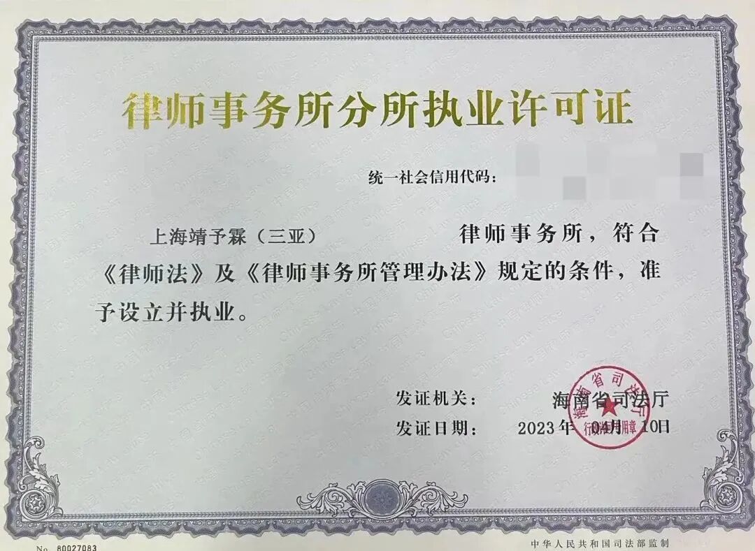 2023年4月10日,9323彩集团常务副会长企业——上海靖予霖律师事务所旗下上海靖予霖(三亚)律师事务所经海南省司法厅批准成立。上海靖予霖(三亚)律师事务所是上海靖予霖律师事务所的第8家分所,也是靖霖刑事律师设立的第22个办公室。